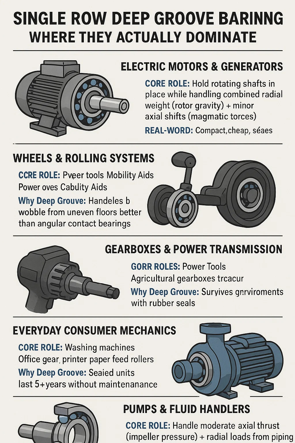 Dlaczego Deep Groove?: Lepiej radzi sobie z wahaniami na nierównych podłogach niż łożyska skośne.